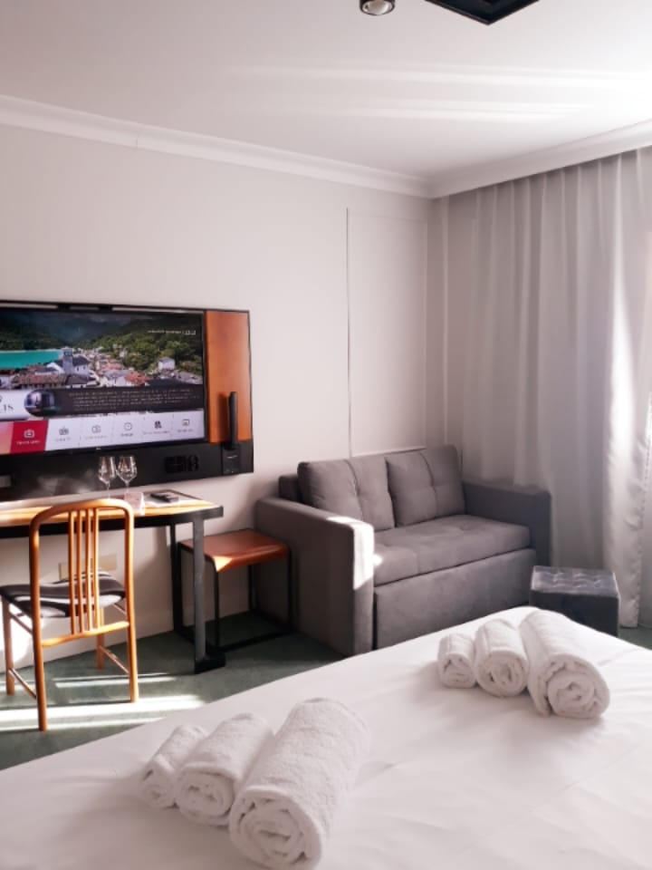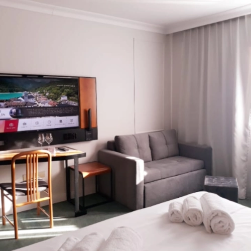 Goście mogą przygotowywać posiłki w w pełni wyposażonym aneksie kuchennym z lodówką, naczyniami kuchennymi i piekarnikiem. Klimatyzowany pokój dwuosobowy oferuje telewizor z płaskim ekranem i kanałami kablowymi, minibar, czajnik do herbaty i kawy, przestrzeń do jadalni oraz widok na jezioro. Pokój posiada 1 łóżko.