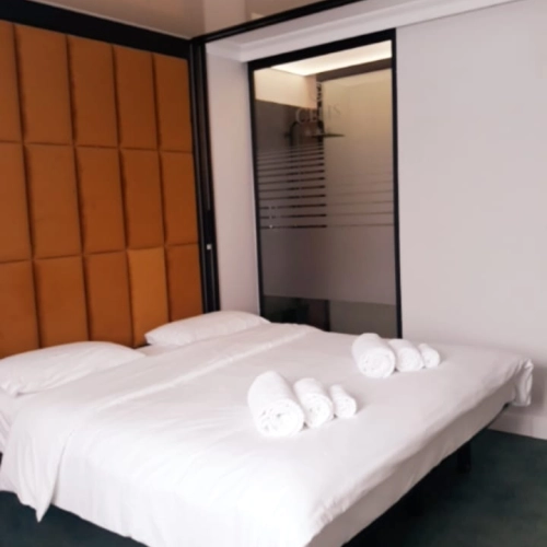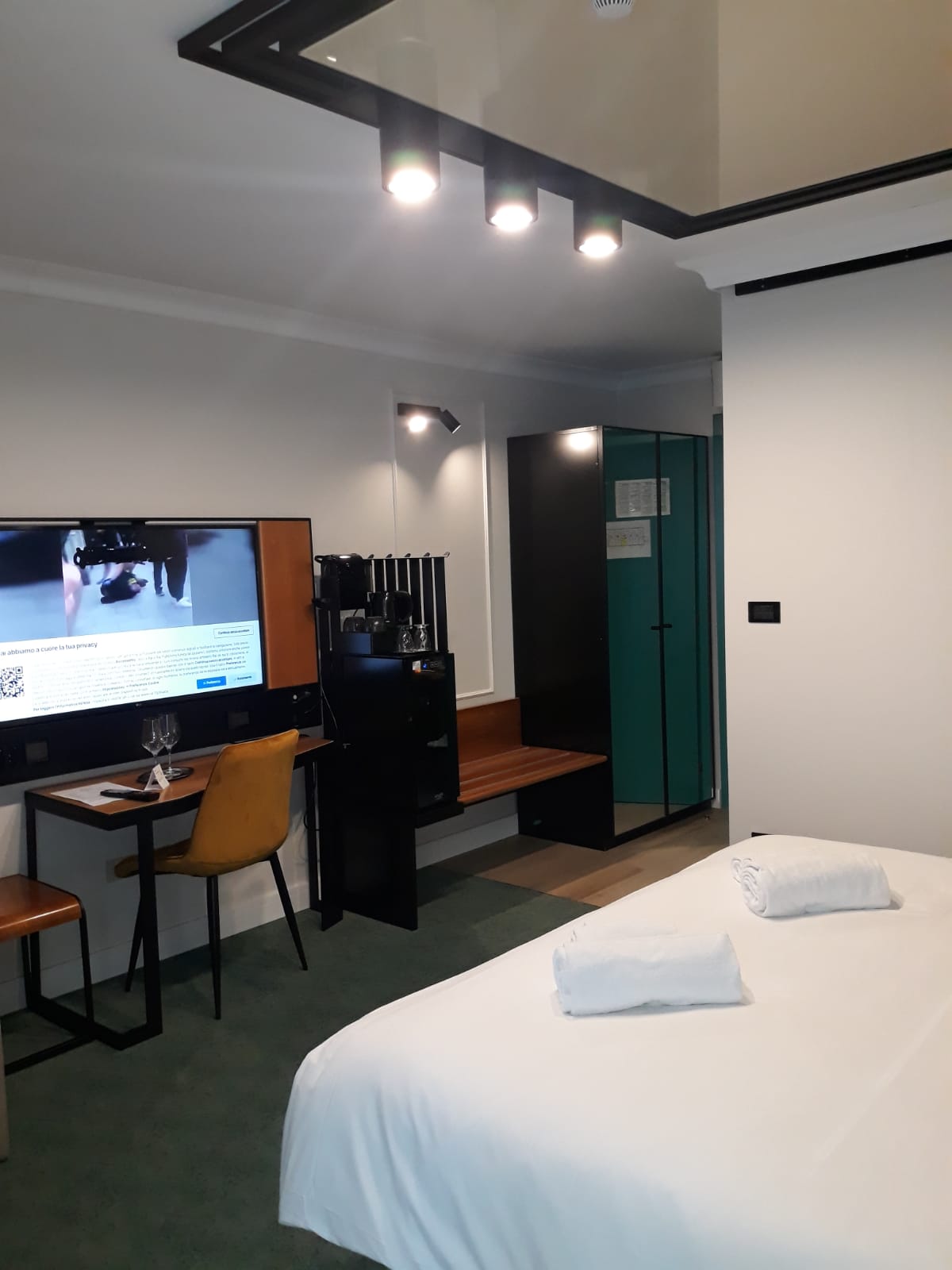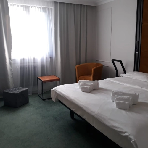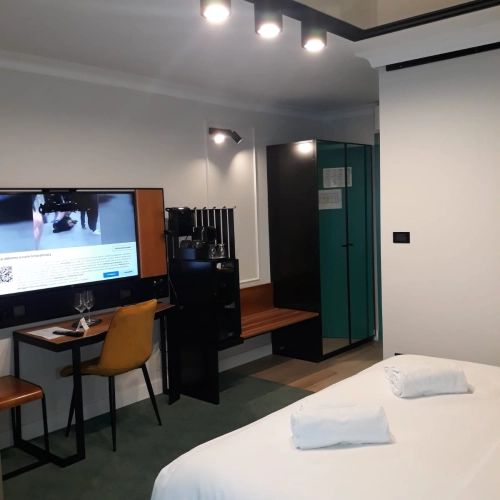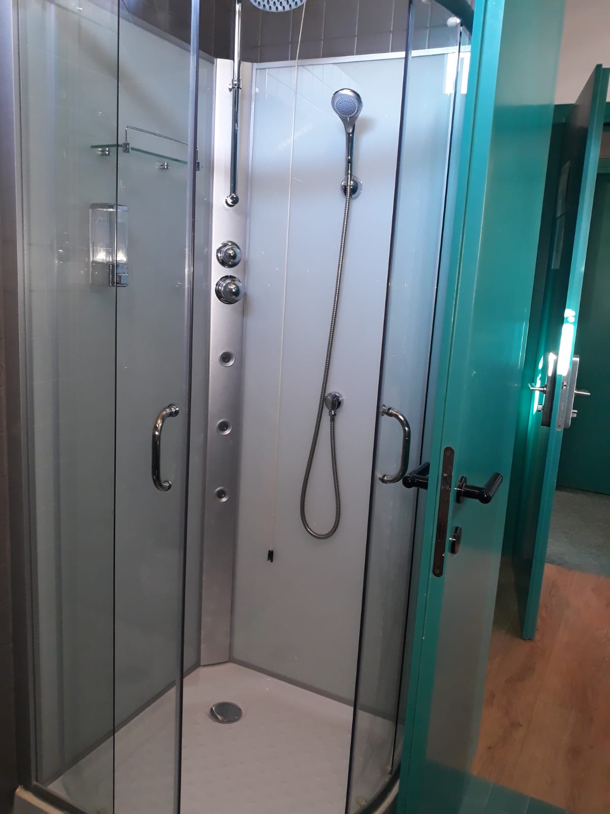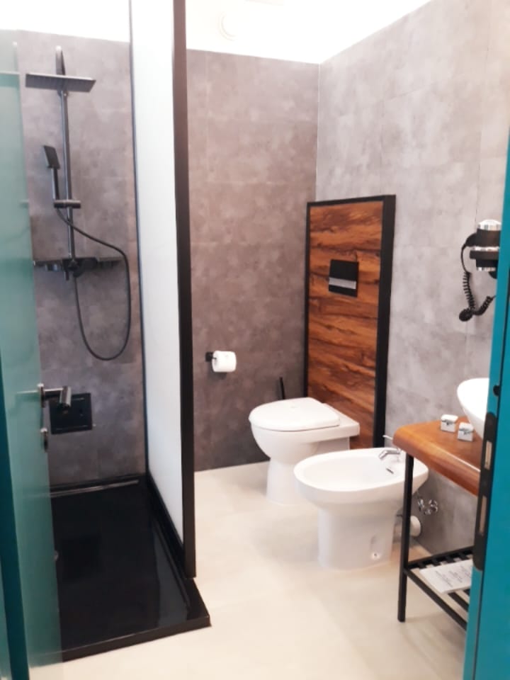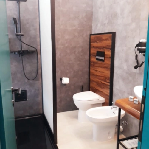 Pokój dwuosobowy obejmuje prywatną łazienkę wyposażoną w prysznic, bidet i suszarkę do włosów.