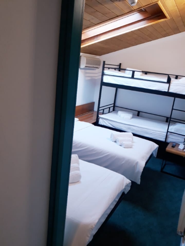 Pokój czteroosobowy wyposażony jest w czajnik do herbaty i kawy, szafę oraz prywatną łazienkę z prysznicem i bidetem.
