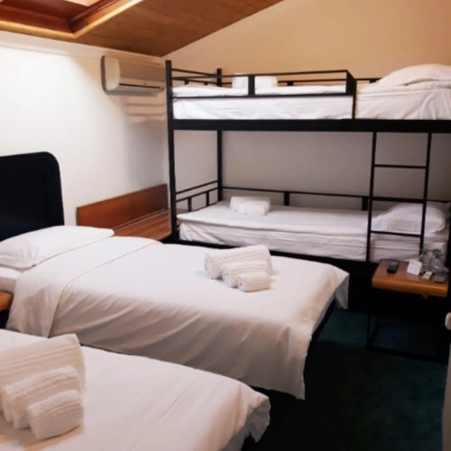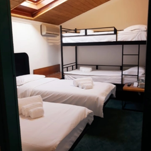 Ten pokój czteroosobowy posiada klimatyzację, minibar, telewizor z płaskim ekranem i kanałami kablowymi, a także wino / szampana dla gości. Pokój posiada 3 łóżka.